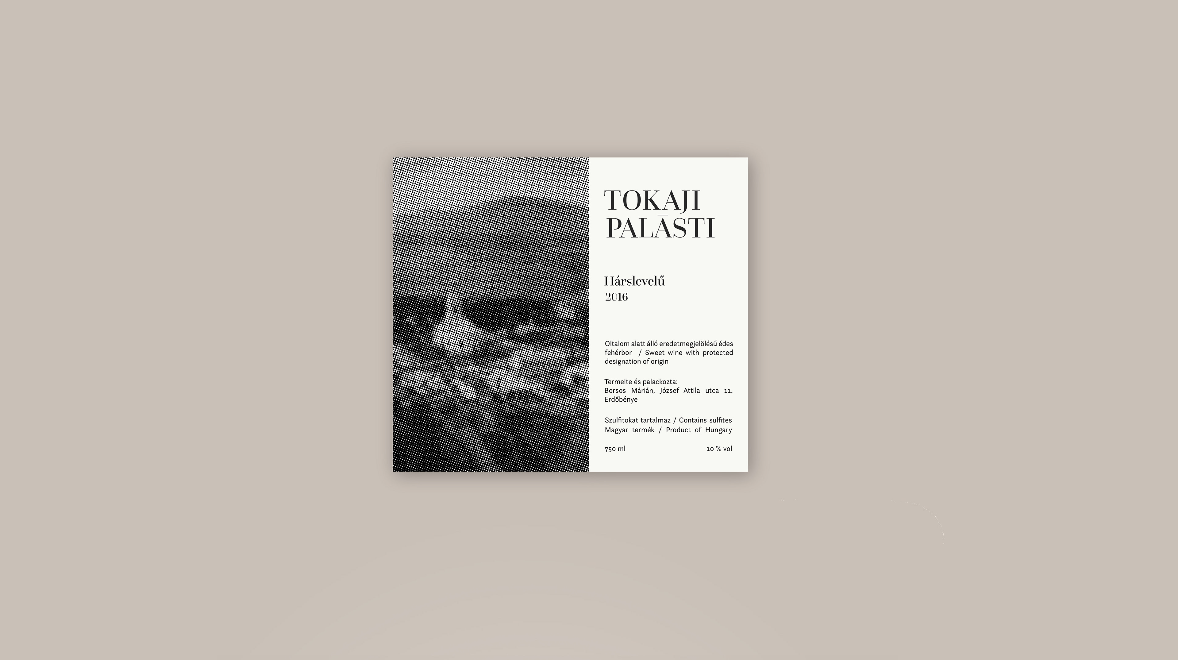 Identity, logo and label proposal for a winemaker in the Tokaj region. The wish of the winemaker was to include a specific antique photograph of the village, where the vinery is located.